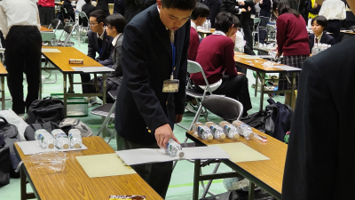 この競技では、会場で電池を作成(玉野高校はダニエル電池で挑戦)して、自作したモーターカーに組み込んでレースをします。レースはまず、往路の直線5メートルを走行し、荷物のバレーボール2個、テニスボール20個、水を入れた500mlのPETボトル3個を積んだ自作のリヤカーを連結して戻ってきます。制限時間は往路と復路をあわせた2分と荷物を積む時間1分の3分以内。