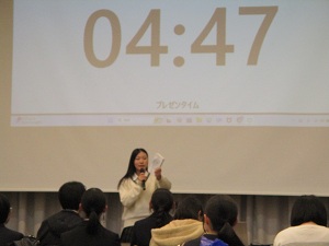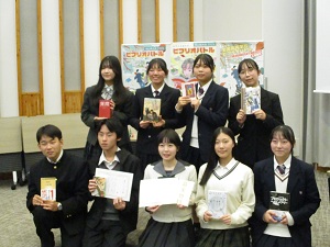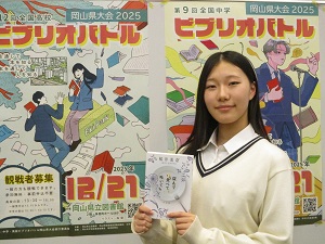 表現研究の授業で3年次生が行ったビブリオバトル(リンク→https://www.bibliobattle.jp/)で、チャンプ本に選ばれた松浦心彩さんが、12月21日(日)に行われた第12回全国高校ビブリオバトル岡山県大会2025に参加しました。14人のバトラーが3グループに分かれて予選を行い、松浦さんは『盗んで食べて吐いても』(桜井美奈著/小学館)の魅力を語って予選を突破しました。本戦では予選とはプレゼンに表現を変え、自身の経験を交えながら、紹介した本との出会いや共感する場面など、5分間の制限時間をフルに使って本の魅力を語りました!残念ながらチャンプ本には選ばれませんでしたが、その後の交流会にも参加し、他校のバトラーと交流を深めました。