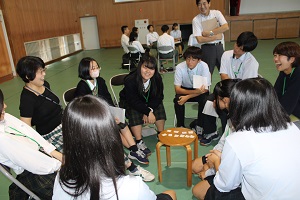 講師として地域の方を40人をお招きし、体育館でアイスブレイクやテーマに沿って様々な会話をしました!